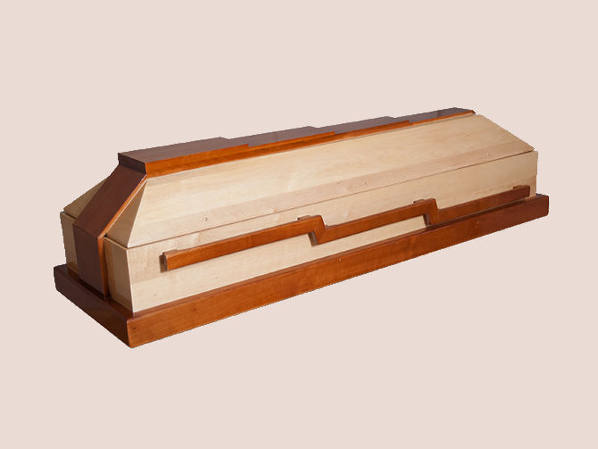 Acest pachet funerar pentru spital contine un sicriu ce face parte din gama de lux. Sicriul este confectionat din lemn masiv de frasin si mahon, realizat in 4 colturi, avand un finisaj lucios si un model de trepte ce urca simbolizand urcarea in rai realizat impecabil. Sicriul este complet echipat cu lenjerie de lux din saten ce contine burete incorporat, manere elegante de lemn tot in forma de trepte ce urca, suruburi si crucifix ce ii ofera un plus de eleganta.